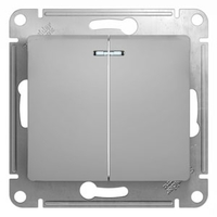 Выключатель 2 клавиши 10AX c подсветкой алюминий Glossa GSL000353