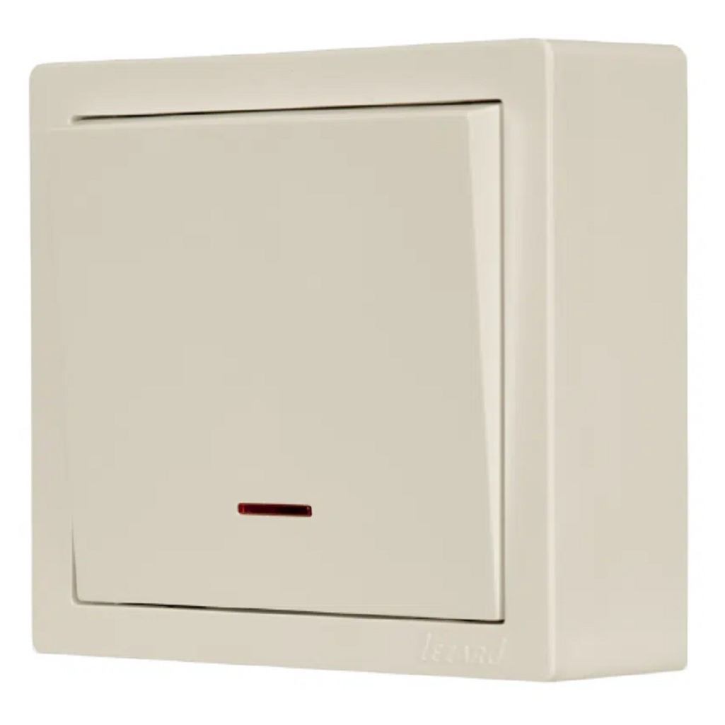 Выключатель с подсветкой Lezard Leto, накладной монтаж, пластиковый, кремовый