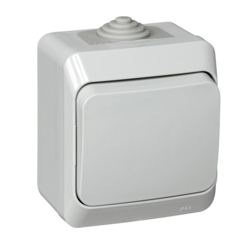 Выключатель Этюд 1-кл ОУ серый IP44 - предназначен для включения и отключения освещения тока в цепи бытовых осветительных приборов. Применяется для установки с открытой проводкой. Подходит для большинства типов ламп, включая энергосберегающие и люминесцентные лампы