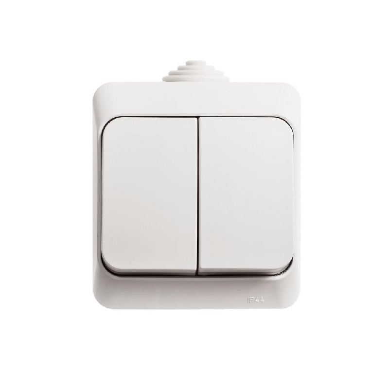 Выключатель Этюд 2-кл ОУ белый IP44 - предназначен для включения и отключения освещения тока в цепи бытовых осветительных приборов. Применяется для установки с открытой проводкой. Подходит для большинства типов ламп, включая энергосберегающие и люминесцентные лампы