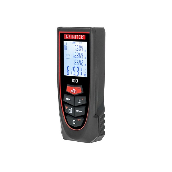 Лазерный дальномер Infiniter 100 1-2-324 оснащен функциями: измерение расстояний, длин, высот, проведение вычислений площадей и объемов измеряемых объектов, а также косвенных измерений с помощью теоремы Пифагора.