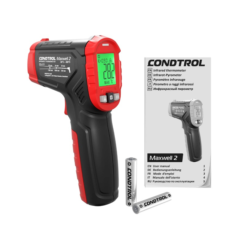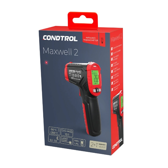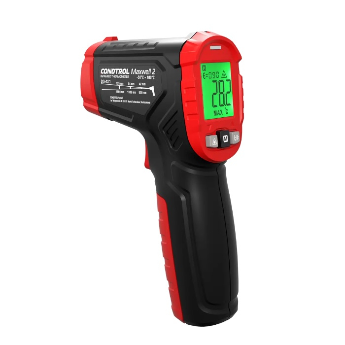 Пирометр CONDTROL Maxwell 2 - это инфракрасный аппарат для обнаружения тепловых потерь, мостиков холода вентиляции, зон утечки тепла, засоров в системе теплоснабжения и отопления, перегрева раличных деталей в механизмах.