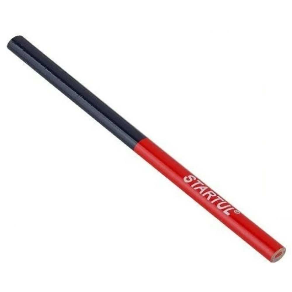 Карандаш двухцветный STARTUL ST4306 180мм подойдет для строительных, отделочных и ремонтных работ. Оставляет четкий след на кирпиче и бетоне, обоях и плотной бумаге. Легко заточить - можно без труда писать острием. Удобно держать в руках, а длина инструмента обеспечивает увеличенный срок службы.