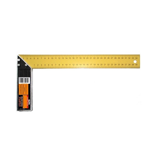 Металлический угольник с окрашенной поверхностью и двухсторонней разметкой полотна. Предназначен для разметки и проверки прямых углов, а также для проверки угла 45 градусов при обработке и сборке изделий.