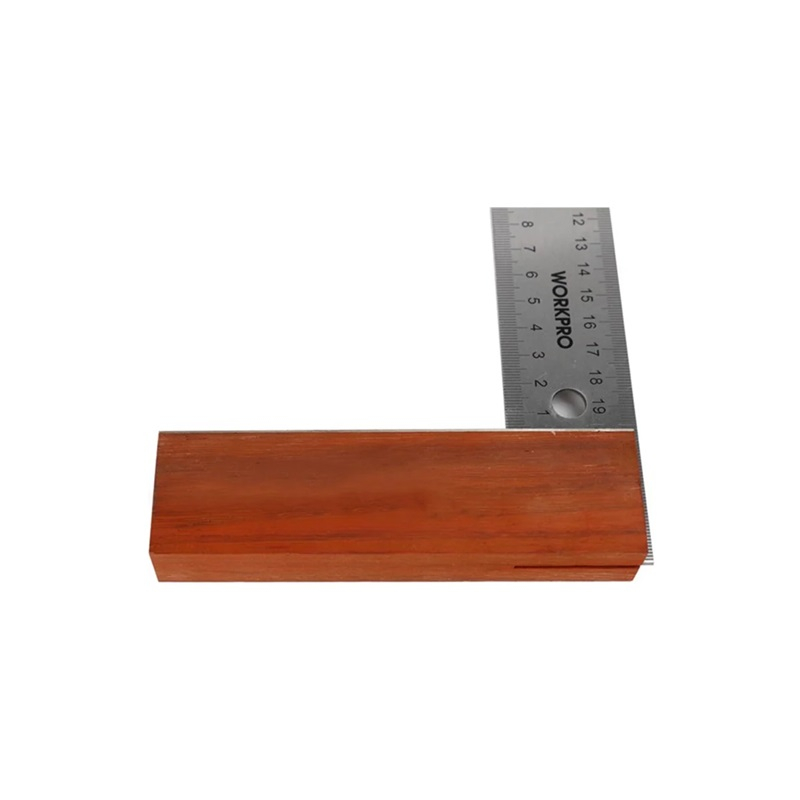 Угольник WORKPRO 200мм WP264004 предназначен для проверки и разметки прямых углов у обрабатываемых заготовок и изделий. Линейка выполнена из высококачественной закаленной стали, которая придает инструменту высокую прочность и износостойкость. Ручка из дерева с латунными накладками обеспечивает превосходное удобство работы. Шкала на линейке размечена в сантиметрах с одной стороны и в дюймах с другой.