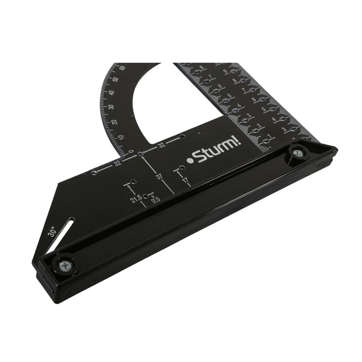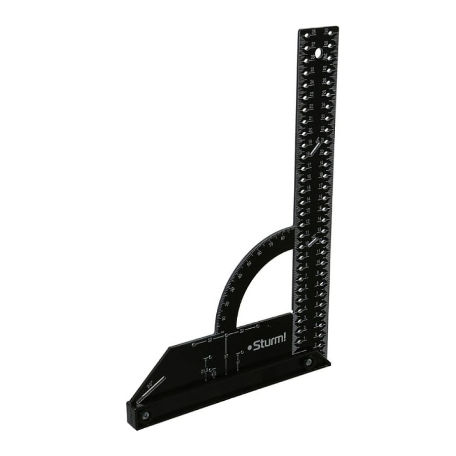 Угольник Sturm 200x300 мм 2020-08-300 разметочный, со стоппером и насечками для параллельной разметки, также есть шкала для разметки углов, что исключает необходимость отдельного инструмента.