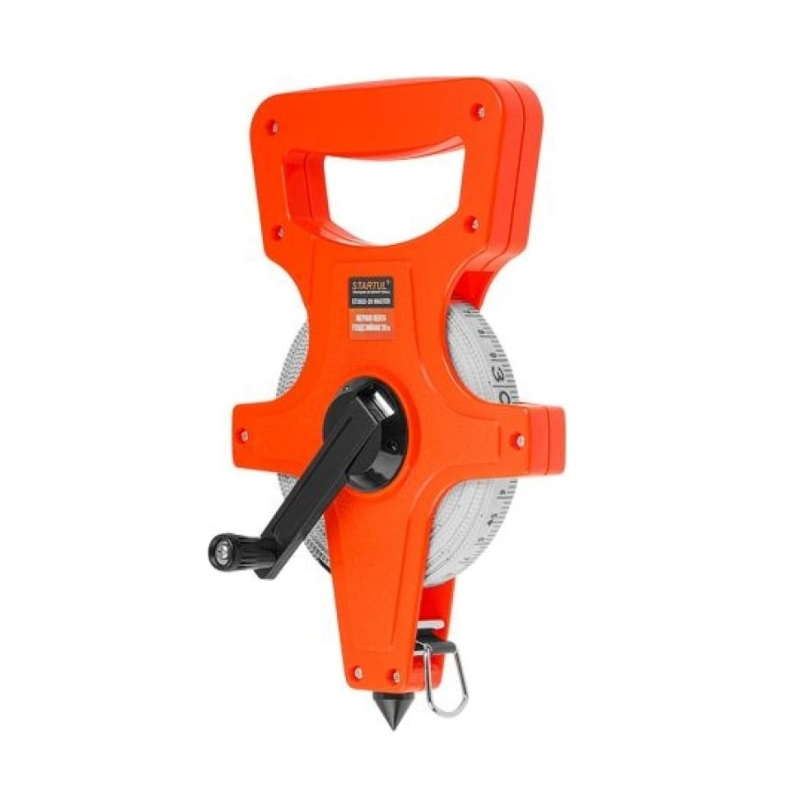 Мерная лента STARTUL ST3022-20 20м для измерительных работ, выполнена в открытом пластиковом корпусе, в нижней его части предусмотрен металлический наконечник для фиксации в земле.