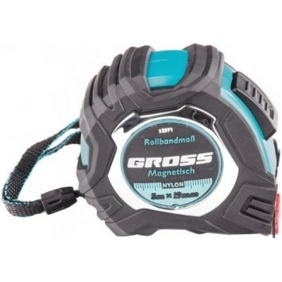 Рулетка GROSS 32571 предназначена для измерения расстояний и объектов в ходе строительных и ремонтных работ. Инструмент обладает прочным обрезиненным корпусом и имеет нейлоновое покрытие измерительного полотна. Для фиксации на стальных поверхностях имеется магнитный зацеп. Есть механизм автоматической фиксации измерительного полотна.