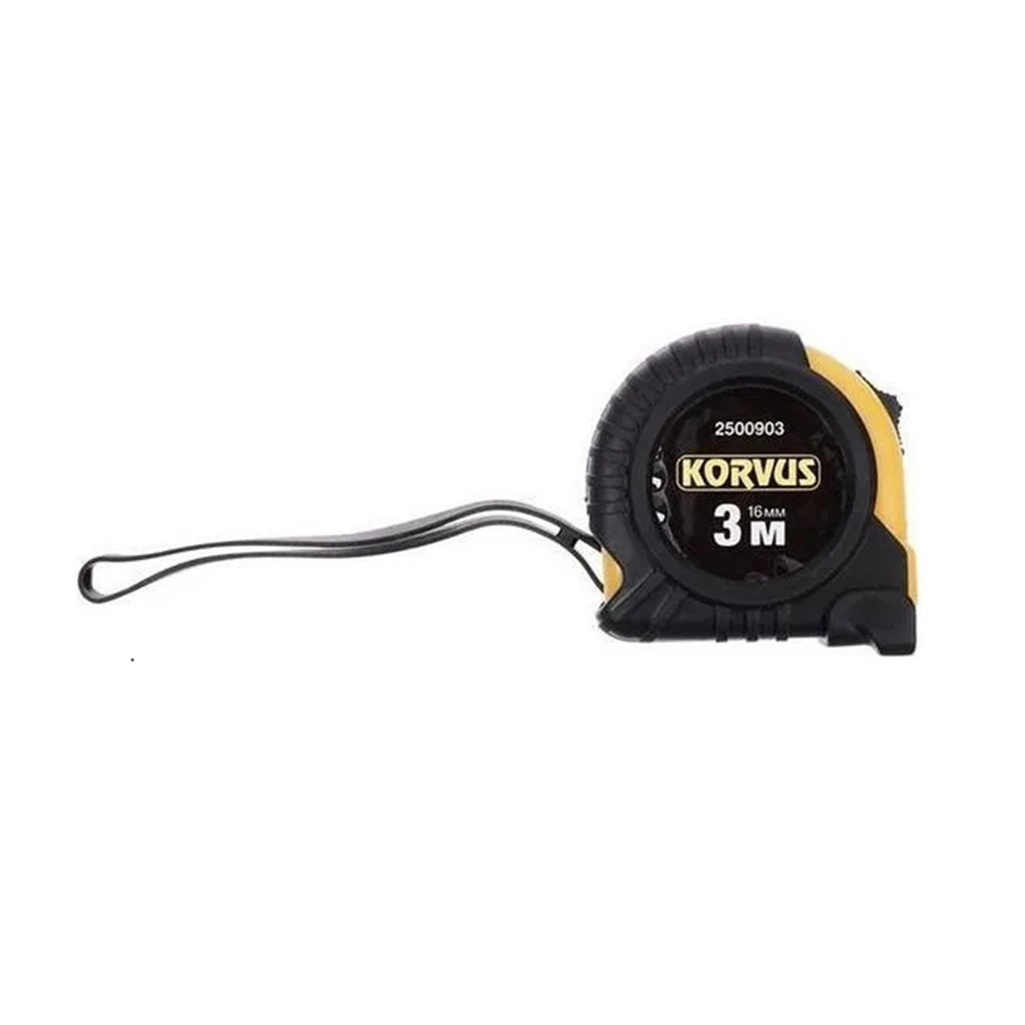 Рулетка строительная Korvus, обрезиненный корпус, 16 мм х 3 м