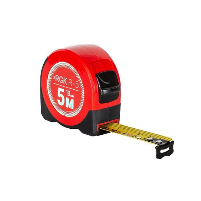 Рулетка RGK R5 774901 со стальной лентой длиной 5 метров выполнена в компактном ударопрочном корпусе и имеет клипсу для крепления на поясе. Небольшие размеры позволяют хранить рулетку в ящике с инструментами.
