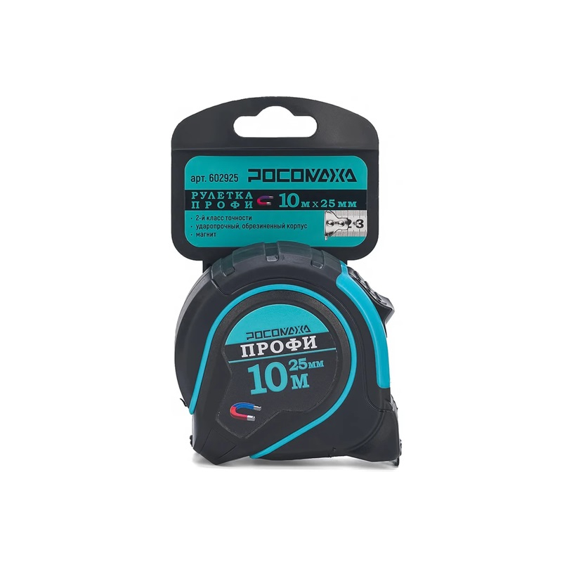 Рулетка РОСОМАХА 10м х 25мм 602925 применяется в профессиональной сфере. Используется для замера поверхностей и расстояний при выполнении ремонтных, строительных и прочих работ. Рулетки имеют второй класс точности, обрезиненный корпус, магнит и белую измерительную ленту.