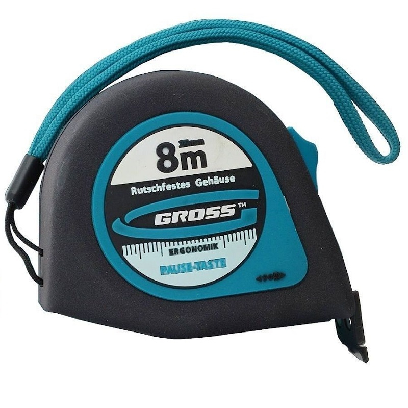 Рулетка GROSS 8 м x 25 мм - удобный в использовании измерительный инструмент с противоскользящим корпусом. Полотно имеет ширину 25 мм и длину 8 метров - что вполне достаточно для выполнения измерений при строительстве
