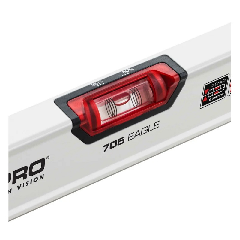Уровень Kapro Eagle 705-40-80 представляет собой профессиональный инструмент для замера неровностей. Измерение уклонов величиной до 2%. Фрезерованная поверхность до 120 см включительно Мостовой элемент конструкции над горизонтальный колбой для повышения прочности, делает конструкцию ровной для непрерывной разметки. Амортизирующие двухкомпонентные торцевые заглушки.