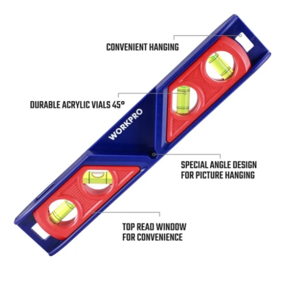Рамный уровень Workpro 225 мм представляет собой измерительный прибор, с помощью которого проверяют прямолинейность плоских и цилиндрических поверхностей, а также контролируют величину их отклонения от горизонтального и вертикального положения.