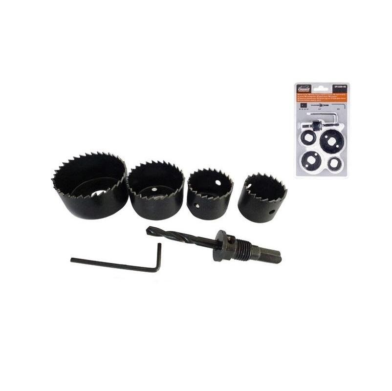 Набор пильных коронок GEPARD GP2200-06 включает в себя 6 предметов: 4 коронки по дереву (диаметр 32, 35, 44, 54 мм), переходник (державка) с центрирующим сверлом 3/8" Hex 1шт., шестигранный ключ 1шт. Набор упакован в индивидуальный блистер с отверстием под крюк.