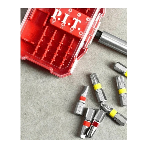 В наборе P.I.T. 10 предметов. Биты совместимы с шуруповертом, гайковертом и дрелью. Материал изделий - сталь.