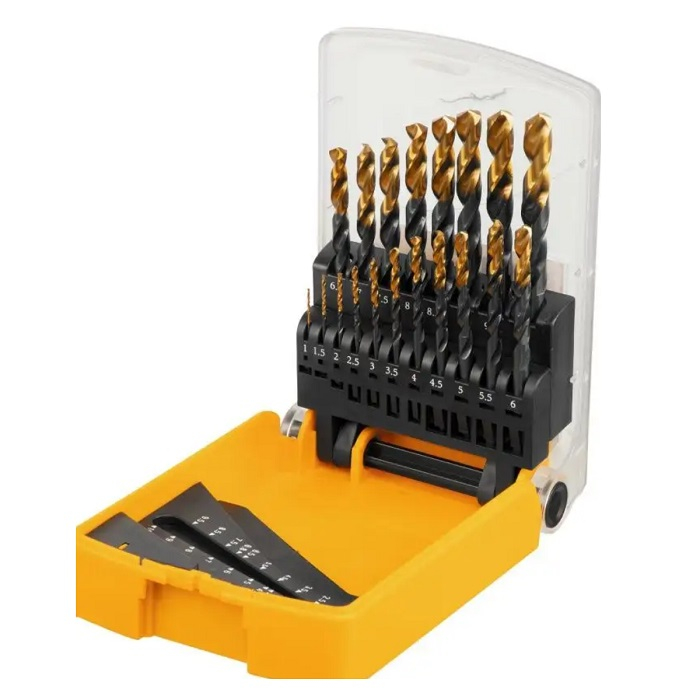 Набор Denzel 72321 состоит из 19 сверл по металлу выполненных из стали HSS-Tin очень распространенных диаметров от 1 до 10 мм.