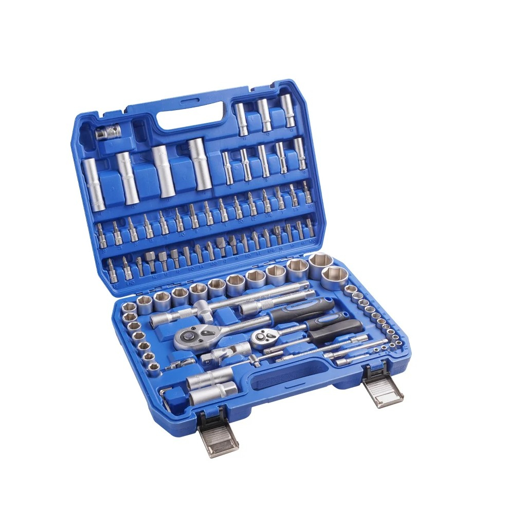 В набор входят торцевые головки различного диаметра (1/4" и 1/2"), удлиненные головки, а также трещотки и воротки, что позволяет работать с широким спектром крепежных элементов. Комбинированные ключи и биты с различными профилями (SL, PH, PZ, HEX, TORX) облегчают демонтаж и монтаж различных деталей.