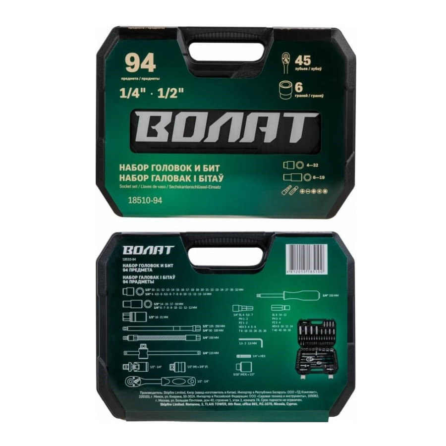 Технические характеристики набора головок ВОЛАТ 94 предмета