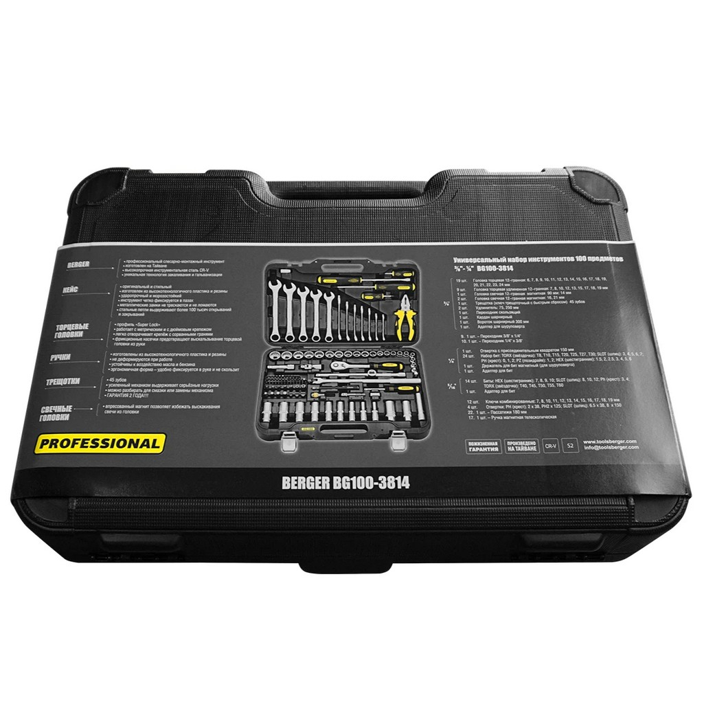 Особенности набора инструментов BERGER BG100-3814 100 предметов:
