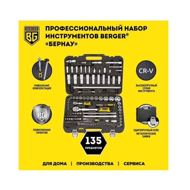 Набор инструмента BERGER Бернау BG135-1214 135 предметов