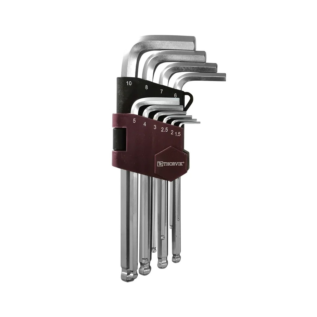Набор шестигранных ключей Thorvik HKB10S с шаром, 10 предметов, сталь