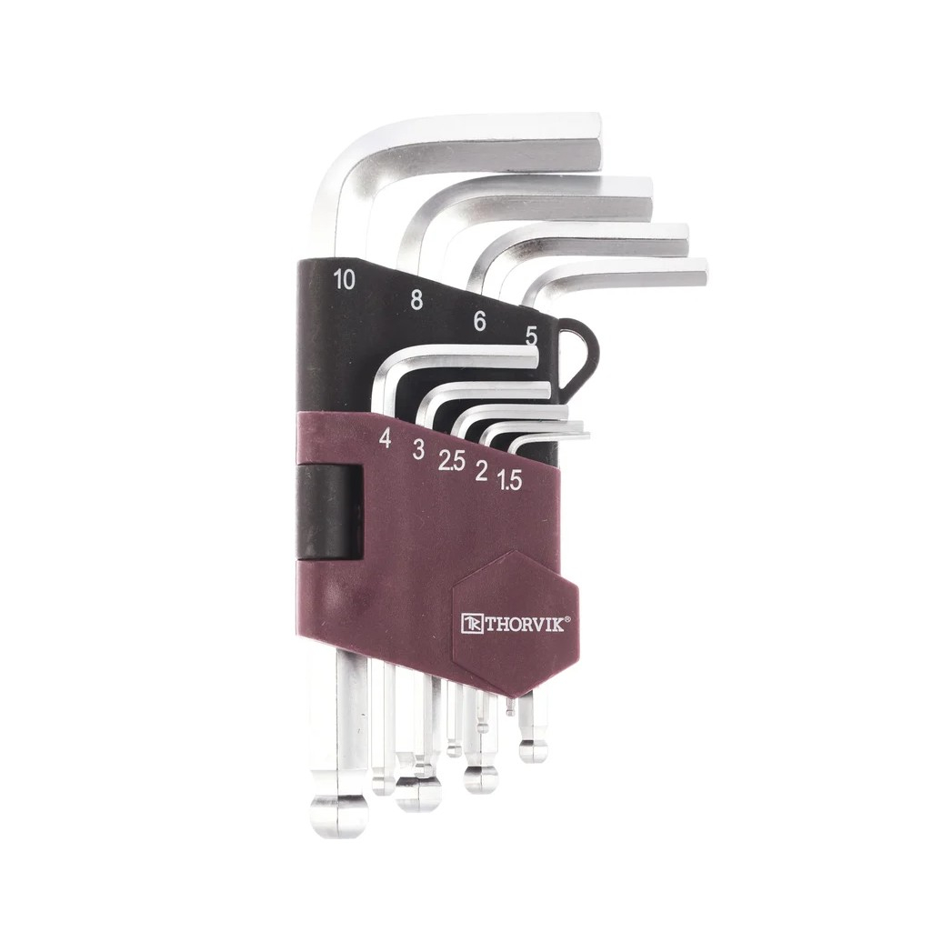 Набор шестигранников Thorvik HKSB9S из стали, 9 коротких ключей