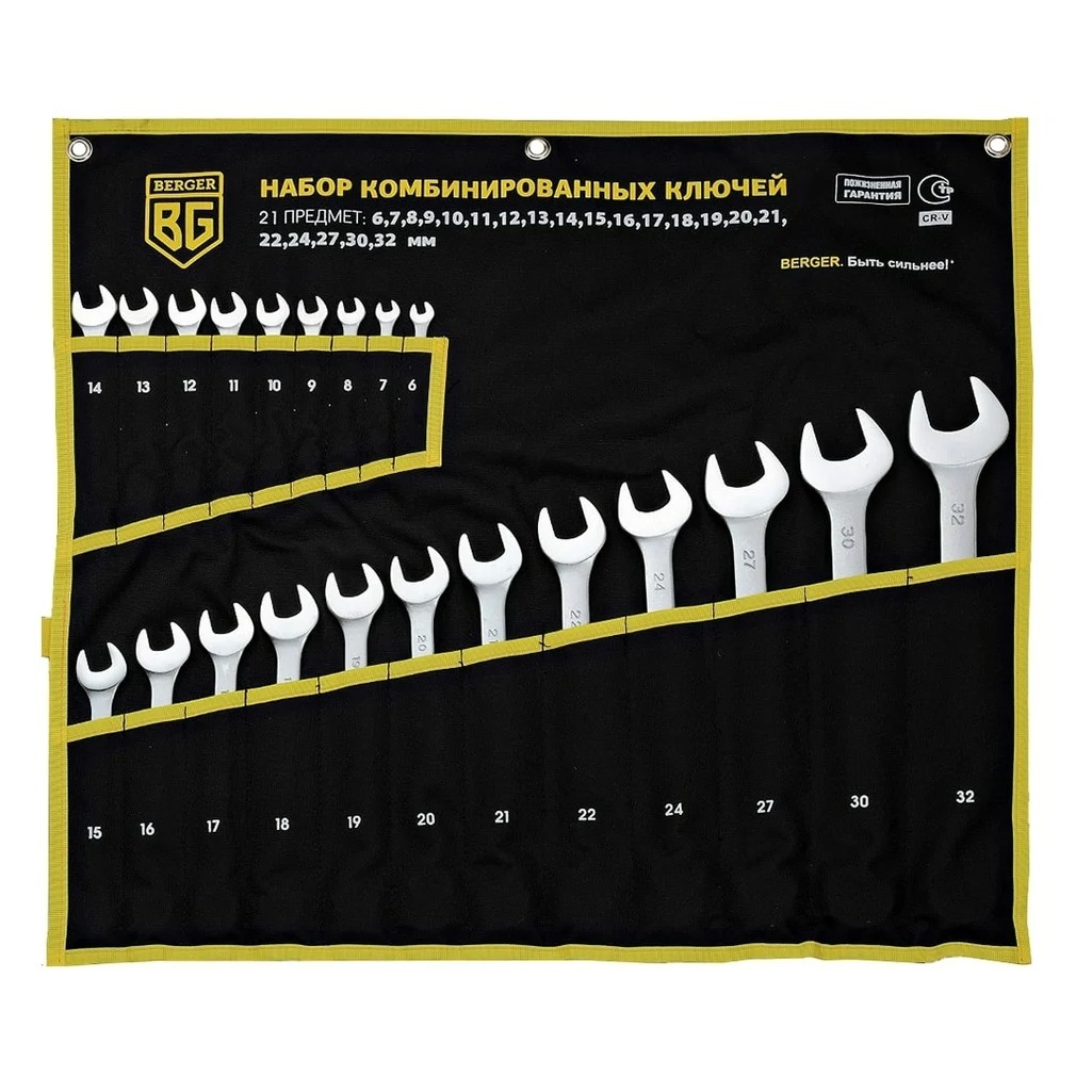 Технические характеристики набора ключей комбинированных Berger BG1146 21 предмет
