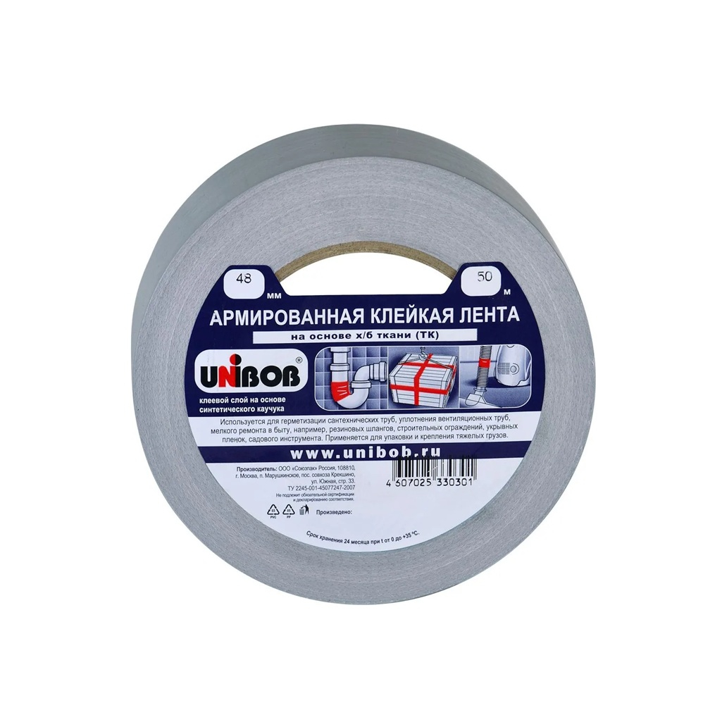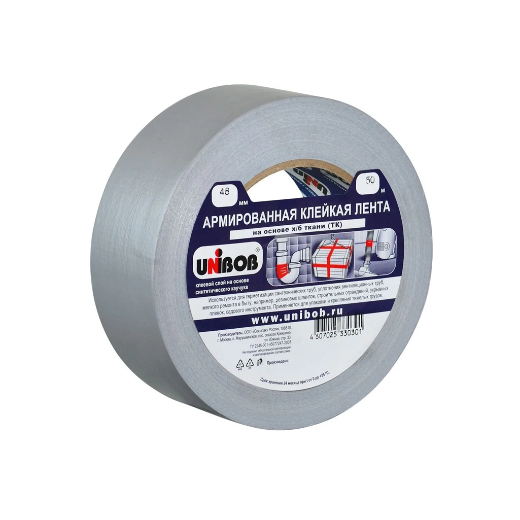 Лента клейкая Unibob армированная 48мм х 50м используется для уплотнения вентиляционных труб, ремонта поверхностей, например сидений в автомобилях, резиновых шлангов, строительных ограждений, укрывных пленок. Данные типы лент применяются также для соединения элементов упаковки, несущих повышенные нагрузки. Отличная адгезия практически ко всем поверхностям.
