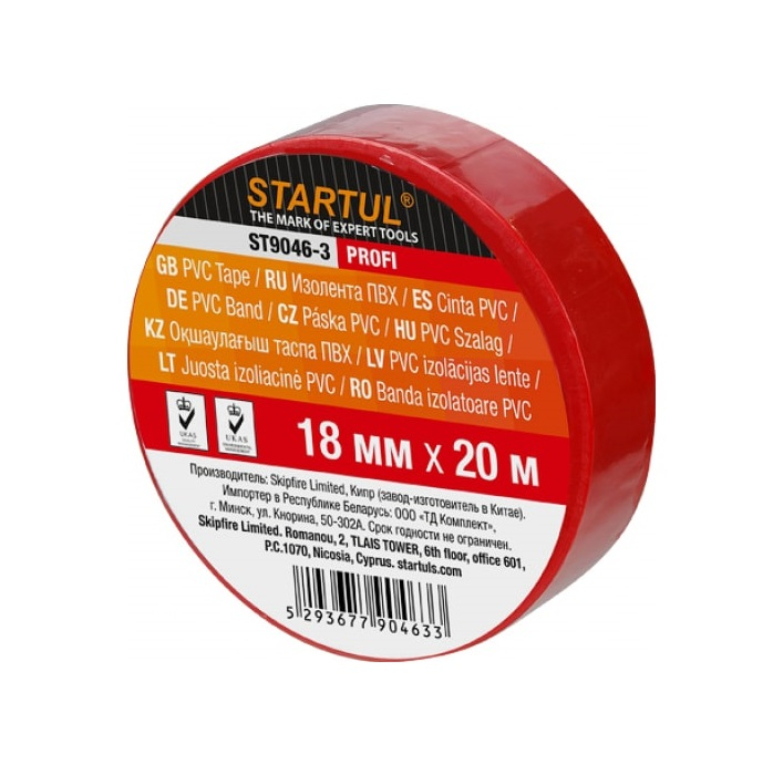Технические характеристики изоленты STARTUL PROFI ПВХ 18мм*20м, красная