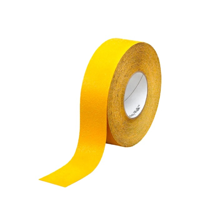 Лента самоклеящаяся Anti Slip Systems, 25 мм, желтый состоит из качественной подложки на основе ПВХ или полиэстера с нанесенной на лицевую сторону абразивной крупной крошкой из карборунда или оксида алюминия. Полученная таким способом шероховатая поверхность наподобие шкурки эффективно препятствует скольжению, защищая человека от падения. На вторую сторону наносится мощный долговечный акриловый, модифицированный акриловый или каучуковый клей, который позволяет удерживать ленту практически на любых непористых поверхностях — гладкий бетон, мрамор, гранит и керамогранит и т. д.