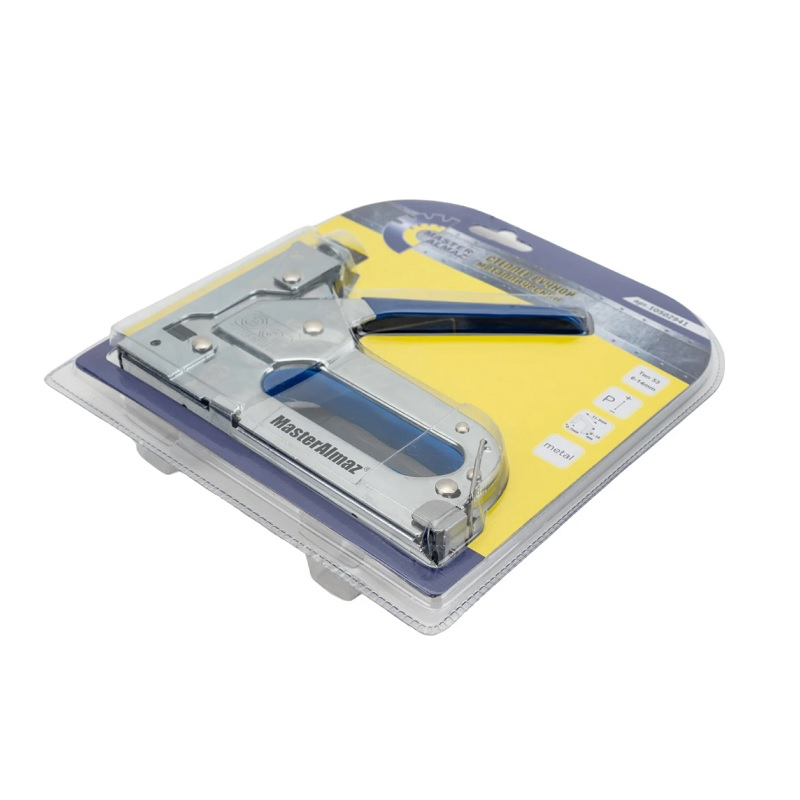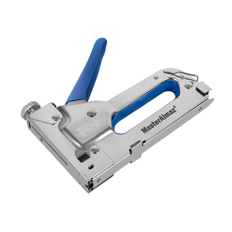 Пружинный ударный механизм с регулировкой силы удара. Спусковой рычаг фиксируется хомутом, во избежание самопроизвольного выброса скоб. Предназначен для крепления тканных материалов к поверхности из дерева, ДВП. Скрепления картона, гипсокартона, пароизоляции, проводки, деревянных заготовок.