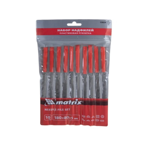 Набор надфилей Matrix 180х5 мм 10 шт 15824 - это набор надфилей размером 180 х 5 мм, каждый надфиль имеет пластиковую рукоятку, состоит из 10 инструментов, применяется для опиловки и зачистки различных мелких деталей.