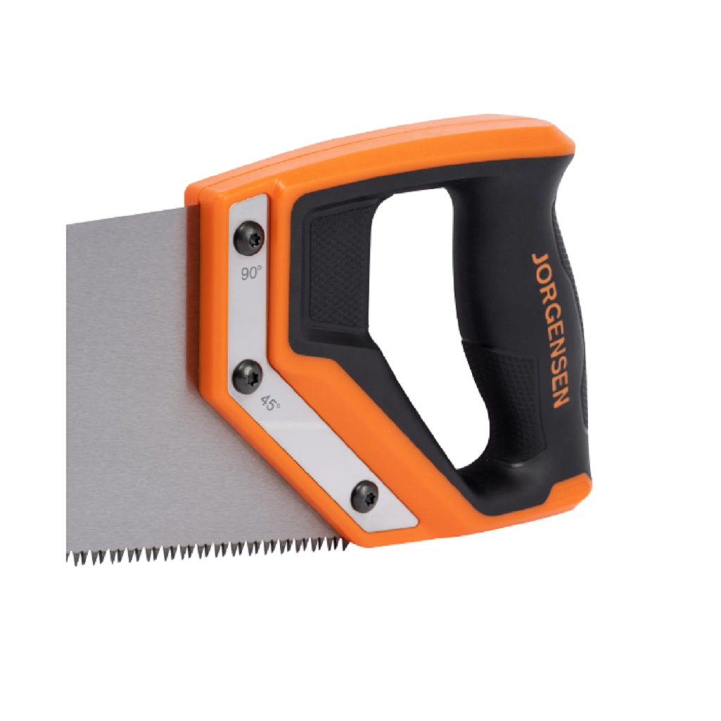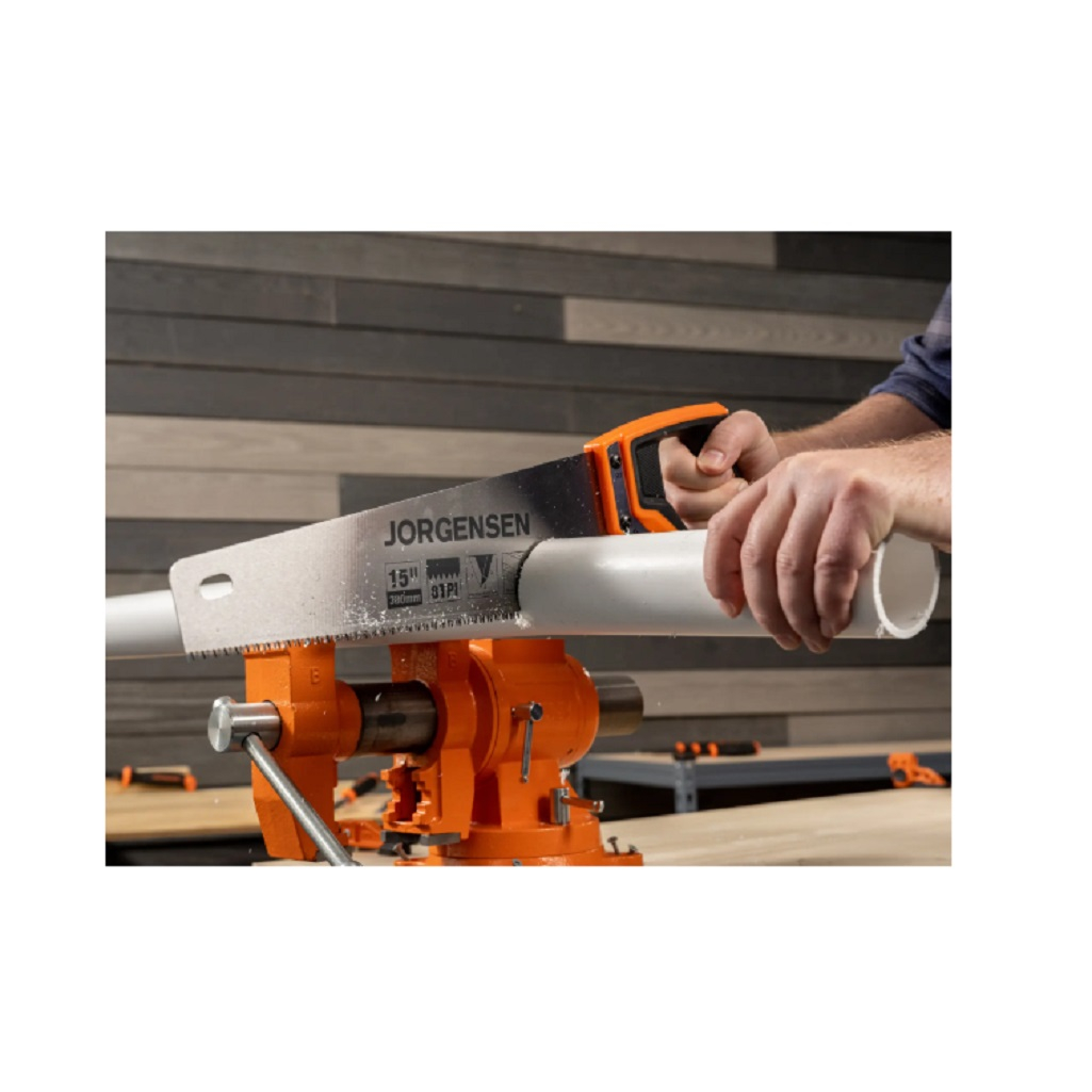 Ножовка по дереву Pony Jorgensen PJ 70600, длина 380 мм, 8TPI Благодаря трёхгранным зубьям с 8 зубьями на дюйм (TPI), пила обеспечивает быстрый и эффективный распил как при движении вперёд, так и при обратном ходе. Лезвие из закалённой стали сохраняет остроту на долгое время и не требует частой заточки. Инструмент предназначен для работы с древесиной и материалами из ПВХ. Удобная нескользящая рукоятка делает пилу идеальным выбором для продолжительного использования. Эта ручная пила подходит как для профессионалов, так и для любителей.