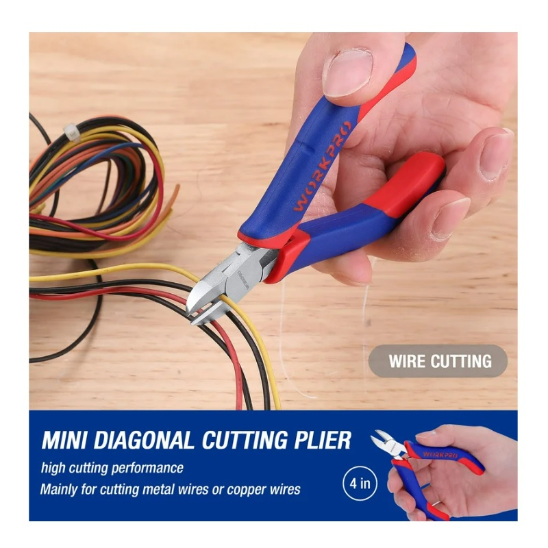Бокорезы Workpro мини - это высококачественный губцевый инструмент, изготовленный из кованой стали. Инструмент имеет полировальное покрытие и трёхцветную рукоятку, устойчивую к скольжению. Высокая режущая способность позволяет комфортнее пользоваться бокорезами.