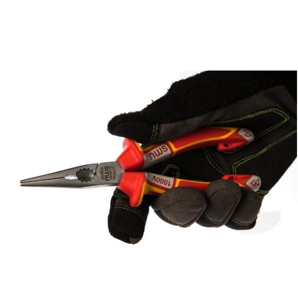 Прямые длинногубцы VDE 1000В 170мм NWS 140-49-VDE-170 используются для радиомонтажных работ под высоким напряжением до 1000В. Тонкие полукруглые губки служат для удобного захвата, изгибания и удержания заготовок. Также инструмент подходит для резки твердой и мягкой проволоки. Поверхность захвата губок оснащена зубчиками для более уверенного удержания заготовок без проскальзывания.