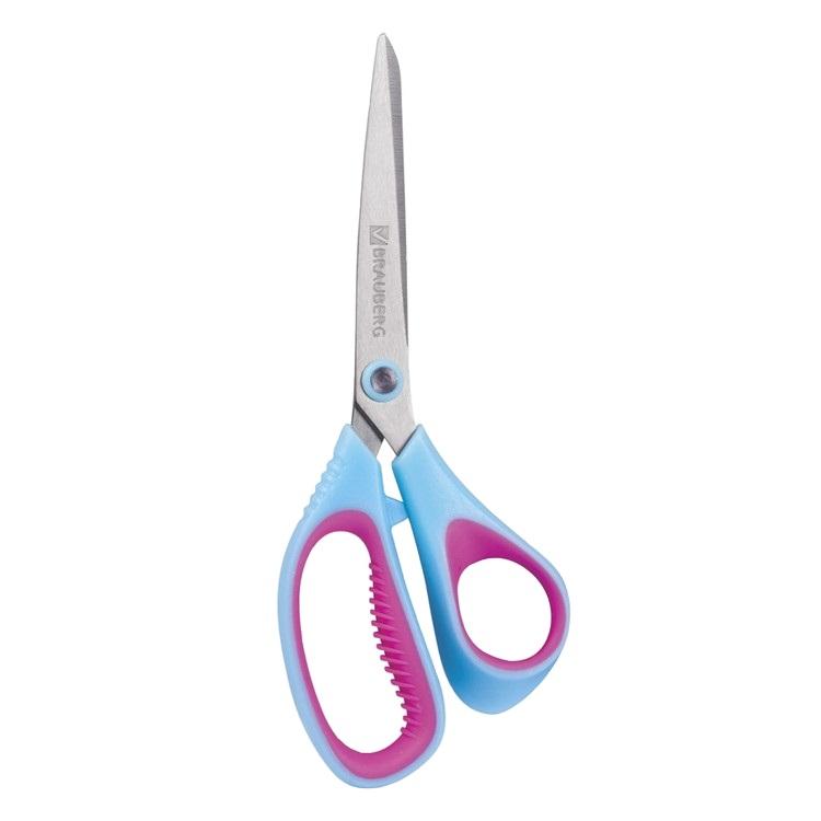 - Ножницы BRAUBERG "Extra 3D", 216 мм, ассиметричные, ребристые рез. вставки, бирюзово-фиол. 236453