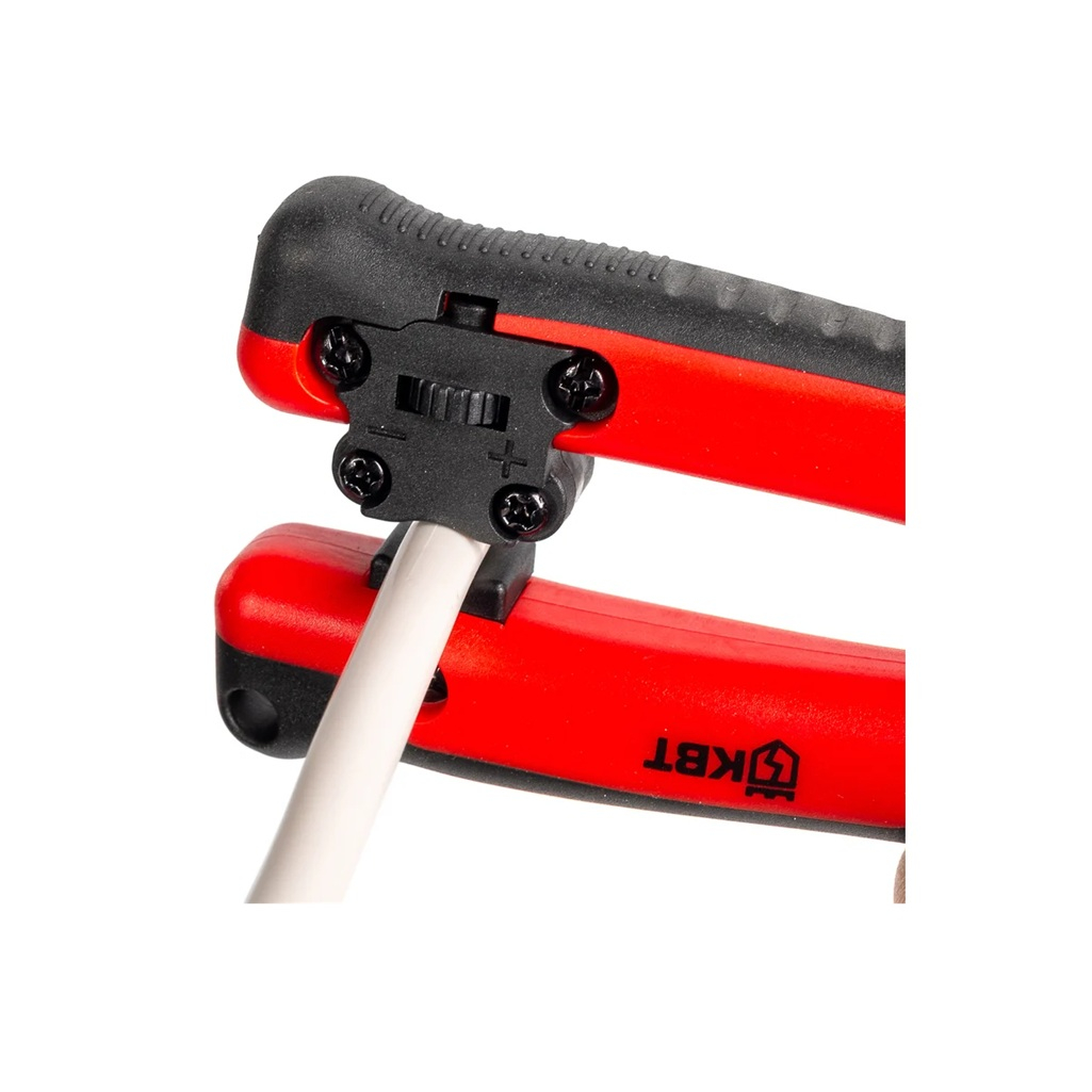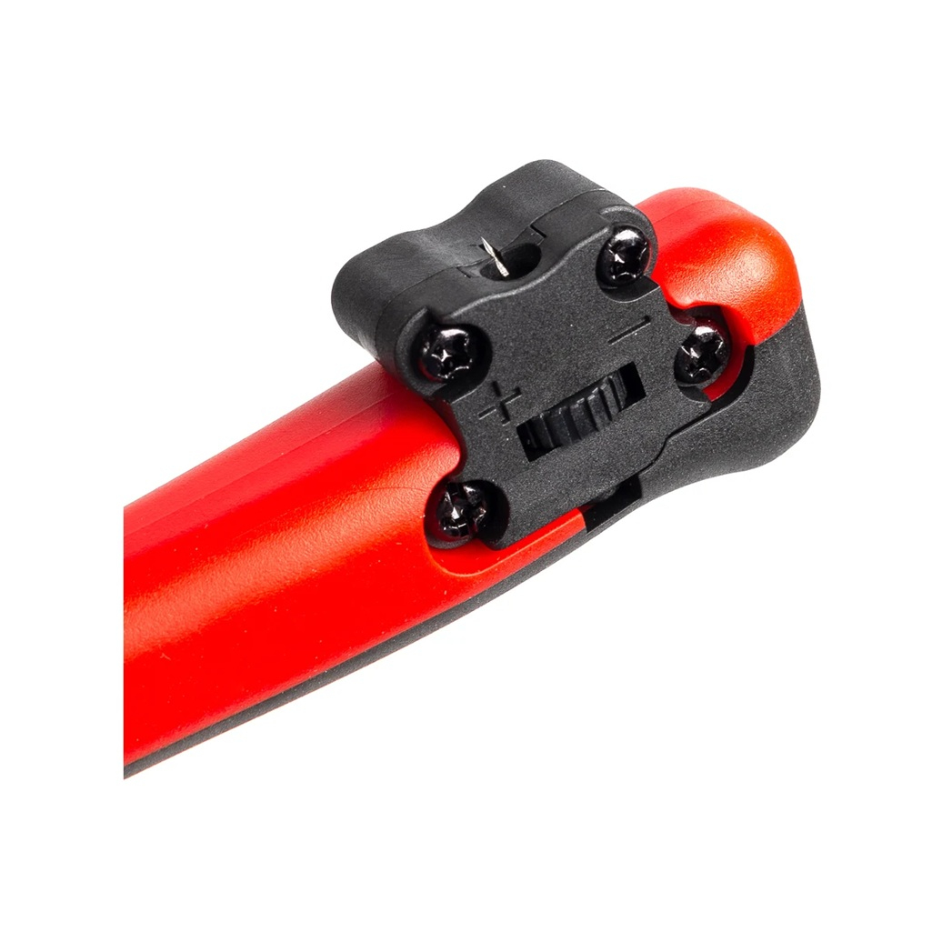 Ножницы кабельные КВТ МС-04 профессиональные, красные с черным, 165 мм - это многофункциональный инструмент для электромонтажных работ, сочетающий в себе функции резки и зачистки проводов. Эргономичный дизайн инструмента включает двухкомпонентные рукоятки с вставками из термопластрезины, обеспечивающие надежный хват и комфорт при длительной работе. Противоскользящие свойства рукояток повышают безопасность использования. Надежность конструкции обеспечивается закаленной сталью, из которой изготовлены рабочие элементы. Серповидные лезвия с точной заточкой позволяют выполнять рез аккуратно и без деформации кабеля. Возвратная пружина облегчает рабочий процесс, автоматически возвращая лезвия в исходное положение. Универсальность применения достигается благодаря специальному модулю для продольной разделки кабельных оболочек с регулируемым лезвием. Инструмент подходит для работы с круглыми кабелями различных типов (ПВС, NYM). Практичность использования обеспечивается компактными размерами и продуманной эргономикой. Инструмент удобно хранить в ящике с инструментами и брать с собой на объект. Безопасность работы гарантируется наличием защитных элементов и продуманной конструкцией, исключающей случайное срабатывание механизмов. Блокиратор рукояток позволяет безопасно транспортировать инструмент. Долговечность инструмента обеспечивается использованием качественных материалов и продуманной конструкцией, что подтверждается годовой гарантией от производителя.