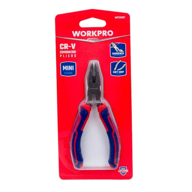 Пассатижи Workpro имеют небольшую длину, что упрощает их использование в стесненных условиях. Накладки на рукоятках уменьшают скольжение и увеличивают эффективность использования. Инструмент выполнен из качественной хромованадиевой стали, что обеспечивает прочность и долговечность.