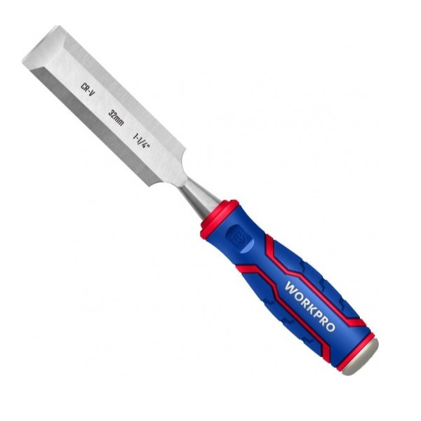 Стамеска-долото Workpro 32 мм представляет собой столярный ручной режущий инструмент, предназначенный для выборки небольших углублений в древесине, зачистки пазов, снятия фасок, рельефной и контурной резьбы. Имеет лезвие из кованой стали CR-V, выкованное методом капельной ковки, термообработанное. Кромка лезвия заточена и на 30% длиннее. Также имеет эргономичную рукоятку.