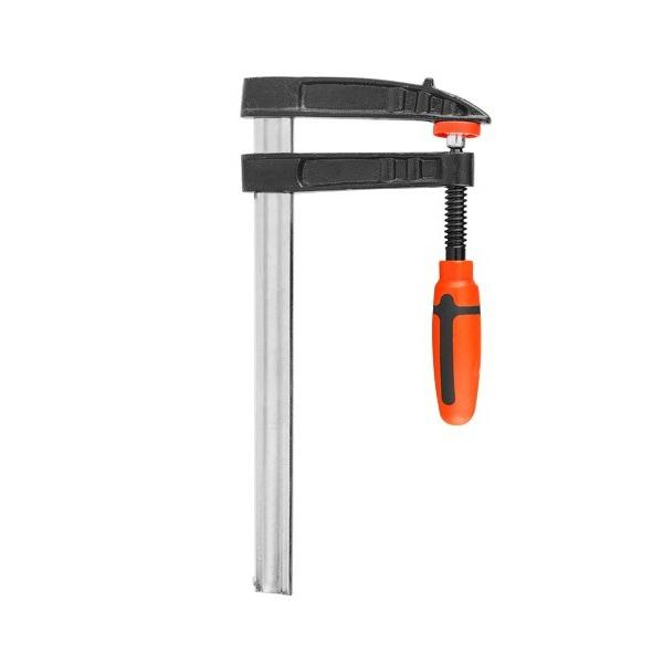 Струбцина F-образная ST9014-25 предназначена для фиксации предметов и прижимания их друг к другу. Применяется при склеивании предметов для улучшения надежности клеевого соединения, при пилении и фрезеровании с шаблоном, при механической обработке деталей и прочих нуждах. Представляет собой стальную раму с подвижной частью, оснащенной зажимным винтовым механизмом. Губки инструмента оснащены защитными пластмассовыми колпачками, что исключает повреждение поверхностей скрепляемых заготовок.