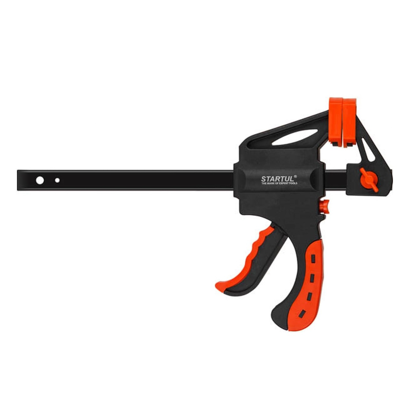 Стpубцина STARTUL ST9024-15 пистолетная сжимает детали между собой, обеспечивает их монтаж на поверхности рабочего стола. Это существенно упрощает последующую обработку заготовок. Инструмент имеет прочное основание и широкие губки для защиты деталей от повреждений. Струбцину удобно использовать в домашней мастерской и на производстве. Ширина зажима составляет 150 мм.