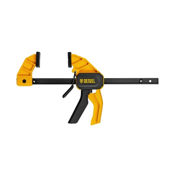 Струбцина Denzel F-образная 150х55 мм 20501 имеет пошаговый зажим шириной 150 мм и глубиной 55 мм. Струбцина оснащена усиленным нейлоновым корпусом, что помогает прочно зафиксировать детали для обработки, склеивания, шлифовки или выполнения прочих задач. Сила сжатия струбцины составляет 680 Н. Струбцина широко применяется для бытового и профессионального использования.