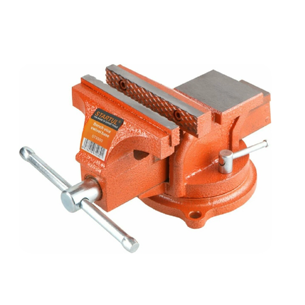 Тиски Startul ST9500-150, закаленные губки, винтовой механизм с трапециевидной резьбой, 150 мм - это профессиональный инструмент с хорошим соотношением цены и качества. Они подходят для мастерских, гаражей и домашнего использования. Чугунный корпус – устойчив к нагрузкам и вибрациям. Подходят для работы с металлом, деревом, пластиком. Ширина губок 150 мм – позволяет фиксировать крупные заготовки. Раскрытие до 190 мм – подходит для деталей разного размера. Поворотное основание на 360° – удобный угол обработки без перестановки заготовки. Опорная плита с монтажными отверстиями – крепление к верстаку болтами (в комплекте).
