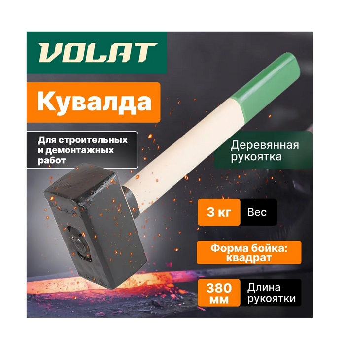 Кувалда ВОЛАТ 3,0 кг с деревянной рукояткой 10550-30 предназначена для строительных и демонтажных работ. Боек выполнен из качественной углеродистой стали. Материал обладает высокой прочностью и долговечностью. Эргономичная рукоятка из прочной древесины покрыта лаком, благодаря чему отличается долговечностью и не расслаивается со временем. Металлическая бойка кувалды имеет квадратную форму, изготовлена из высокоуглеродистой стали, специально разработанной для работы при высоких ударных нагрузках и высоких температурах. Особенность этого инструмента заключается в селективной закалке бойка, которая имеет особую твердость и прочность, боёк меньше разрушается при ударах. Общий вес составляет 3 кг, что обеспечивает баланс между маневренностью и ударной силой. Ручка для кувалды длиной 380 мм изготовлена из лиственного дерева твердых пород, что не только придает ей естественный и приятный внешний вид, но и значительно повышает прочность и срок службы инструмента. Рукоятка покрыта лаком, что делает ее более устойчивой к воздействию влаги и повышает комфорт при захвате. Головка крепко держится на расклиненной рукоятке и не соскочит во время использования. Сочетание качественных материалов и простых форм делает эту кувалду надежным инструментом, который легко справляется со сложными задачами на стройке или в домашних условиях. Кувалда будет полезна на строительной, ремонтной площадках, в гараже или на загородном участке, даче в хозяйстве.