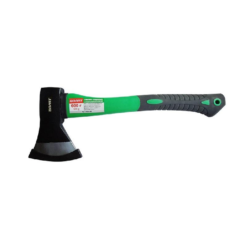 Топор ВОЛАТ 1,0кг 10360-10 - универсальный топор, используется для рубки и тесания древесины различных пород. Лезвие изготовлено из инструментальной стали, что обеспечивает топору высокую прочность и надежность. Фибергласовое топорище с накладкой в нижней части из мягкой резины отлично поглощает колебания, возникающие при работе, не передавая их на руку, что гарантирует удобство при работе. Вес топора 1 кг.