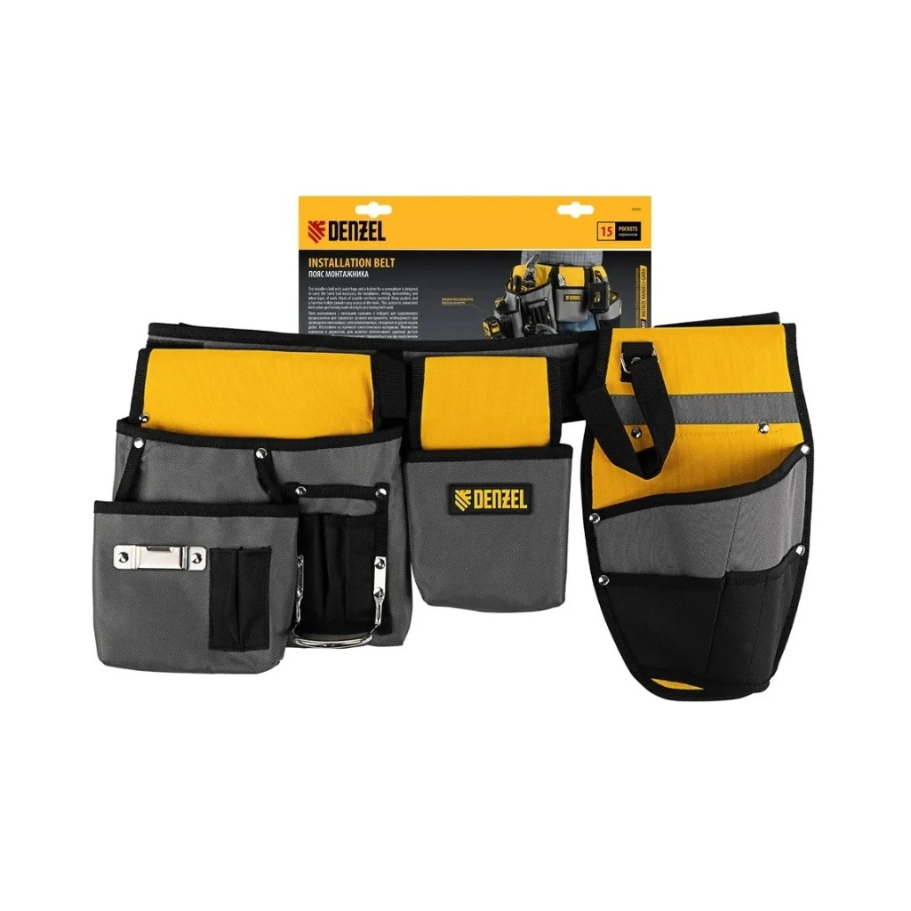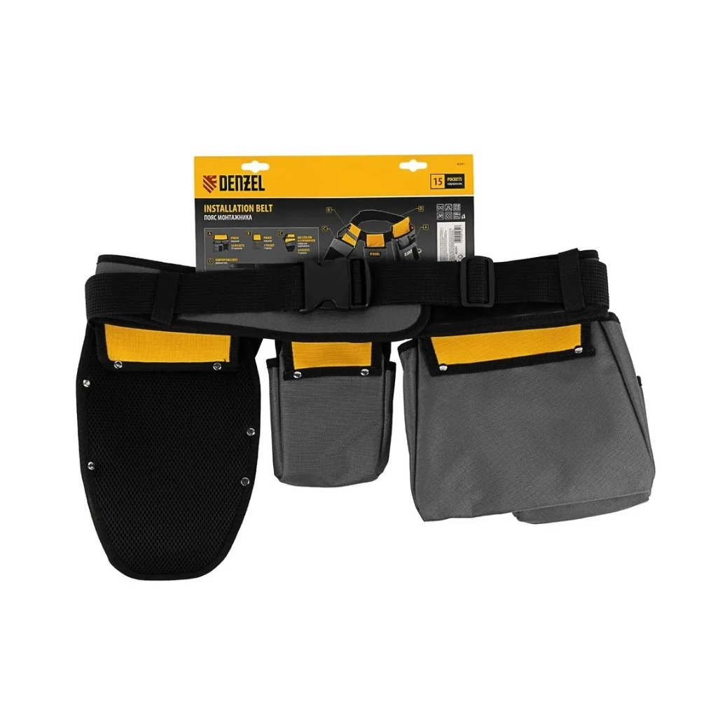 Описание пояса монтажника Denzel 90291, полиэстер, кобуры для шуруповерта, желтого