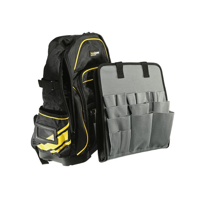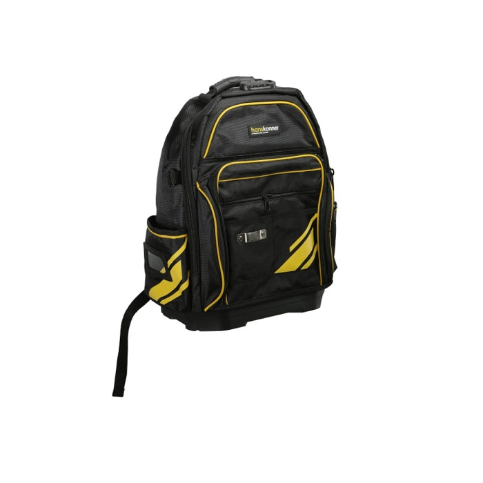 Рюкзак Hanskonner HKBP0161 оснащён кодовым замком для безопасного хранения инструмента внутри. 100% полиэстер выдерживает нагрузку в 30 кг, устойчив к растяжению и стиранию. Быстрая широкая молния позволяет мгновенно открыть рюкзак и получить доступ к инструменту. Съёмный органайзер во внутреннем отделе сумки помогает зонировать пространство для инструмента, а так же сам снабжен карманами. Возможность его извлечения позволяет полностью контролировать эргономику хранения инструмента. Дополнительные вставки в стенки и дно рюкзака позволяют ему лучше держать эргономичную форму при переноске инструментов. Удобная скоба для хранения рулетки обеспечивает быстрый доступ к ней. Сетчатая система вентиляции спинки рюкзака и текстурный рисунок контролируют отвод нагретого и насыщенного влагой воздуха. Этим предотвращается перегрев спины пользователя при переноске инструмента.