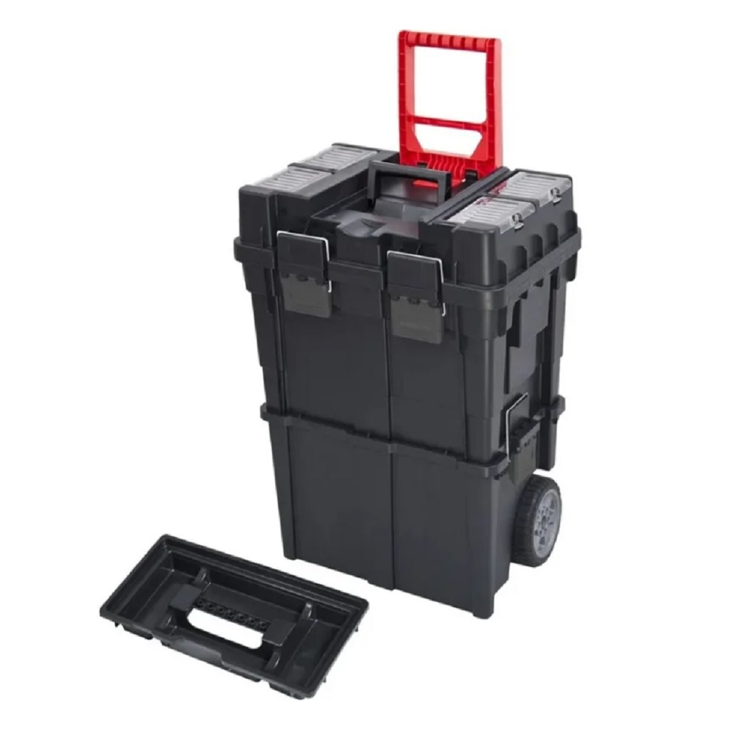 Два съемных лотка с разделителями – позволяют сортировать мелкие детали (болты, гайки, сверла и т. д.). Основное отделение с глубоким объемом – подходит для крупного инструмента (молотки, шуруповёрты, пассатижи). Отделение для расходников (например, бит, насадок) – быстрый доступ к часто используемым элементам. Удобная ручка с прорезиненным покрытием – не натирает руки при переноске. Компактные размеры (350×395×450 мм) – оптимален для перевозки в багажнике или хранения в мастерской. Малый вес (по сравнению с металлическими аналогами) – легко переносить даже в заполненном состоянии.