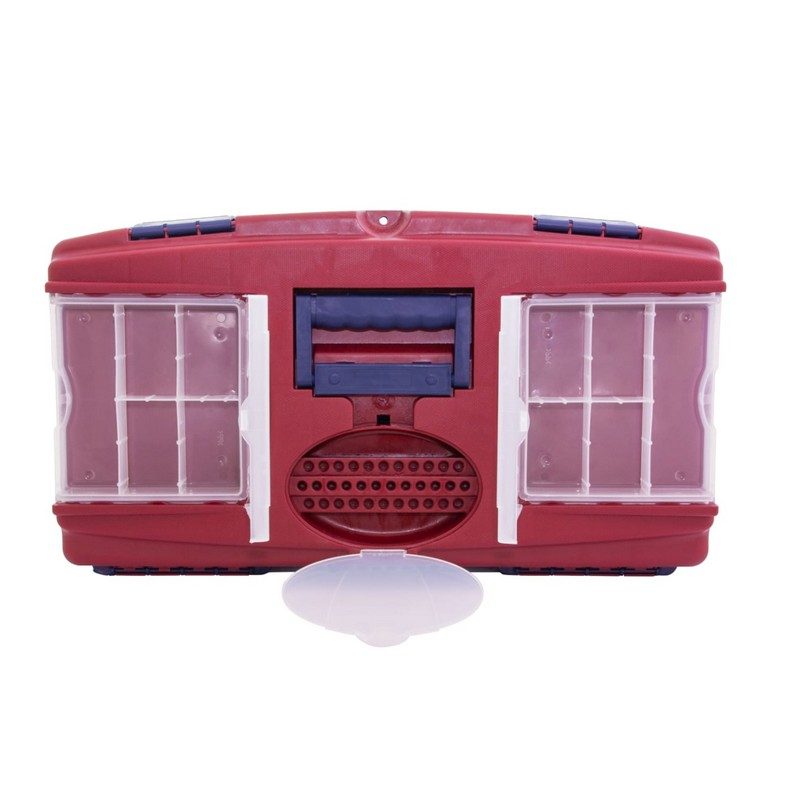 - Двухъярусная конструкция и наличие двух отделений позволяют эффективно организовать пространство внутри ящика, упрощая доступ к инструментам.